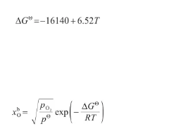 其中,μ表示O原子的標準化學勢(J/mol)。對式(36)關于x求偏導,得:聯立式(35)和(37),得: