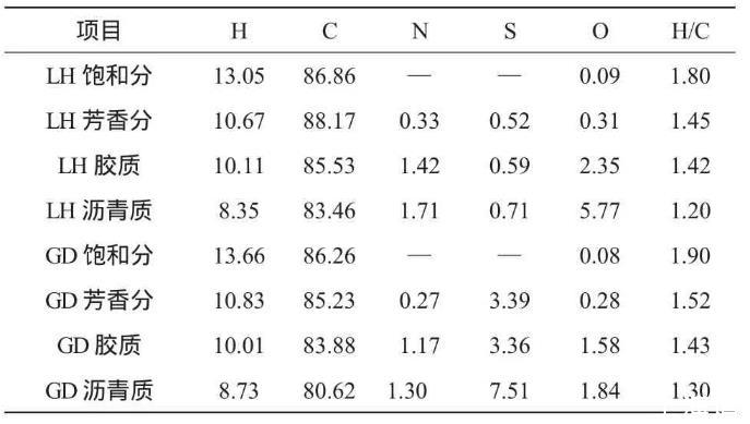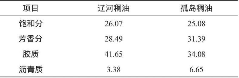 遼河和孤島兩種稠油組分的平均相對分子質量和元素分析結果見表3、4。