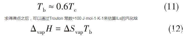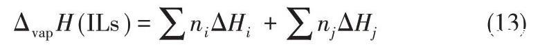 2008年,Verevkin[71]開發了一種基于經驗公式的簡單相加法來計算ILs的蒸發焓,該焓被分解為構成元素的主要成分和輔助成分的校正(基于結構上的特殊性,例如CF3基團或環狀結構的存在)