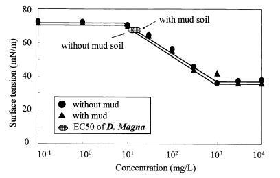 圖 12 泥土存在對地表的影響 AE和有毒表面張力的張力曲線 Daphnia Magna 的價值。