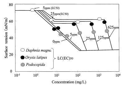 水稻和大水蚤的gtox值很大 因表面活性劑的種類而異。 結果,很明顯,一個 表面活性劑的急性水生毒性不能簡單地 與表面活性劑溶液的表面張力有關, 忽略表面活性劑的種類。