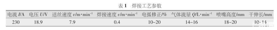 采用CMT一元化焊接工藝,通過(guò)正交試驗(yàn)確定主要影響因素,焊接規(guī)范參數(shù)如表1所示。