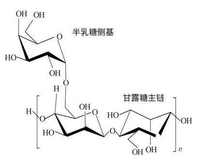 本實(shí)驗(yàn)使用的主要壓裂液稠化劑是羥丙基胍膠,主要原料天然植物瓜爾膠豆胚乳中提取的一種天然高分子,由甘露糖和半乳糖兩種單糖組成的多糖,如圖1。分子主鏈由甘露糖單元通過(guò)β-1,4苷鍵連接,側(cè)基的半乳糖通過(guò)α-1,6苷鍵連接到分子主鏈上。