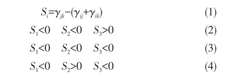 氣液液微分散技術在萃取分離領域的應用是本文的重點關注對象,通常氣相作為內相,萃取劑為中間相,低濃度稀土離子的水溶液為連續相。對于不同體系,最終所形成的氣液液三相流流型由三相界面張力關系決定。根據三相界面張力Torza等引入了鋪展系數[式(1)],若鋪展系數滿足式(2),該體系可形成水包油包氣中空液滴結構;若鋪展系數滿足式(3),該體系可形成Janus結構;若鋪展系數滿足式(4),油滴和氣泡將互相分離。對于常見的氮氣/P507萃取劑/稀土離子鹽酸水溶液體系,該體系界面張力關系滿足式(2),可形成穩定的水包油包氣結構。連續相的稀土離子與中間相的萃取劑在界面接觸發生反應,實現了稀土離子從水相到有機相的傳質。在該過程中氣體的引入有兩個獨特優勢:一是中空微液滴的形成增大了傳質比表面積,加快反應速率;二是與油滴相比中空微液滴的密度大大減小,因此可加速分相。與液液萃取相比,氣液液微分散萃取技術具備傳質快及易分相的特點,有望解決大相比萃取過程中萃取效率低、易乳化等問題。