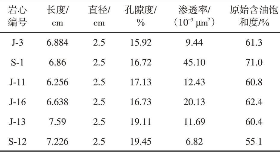 為驗證TPHS活性納米流體在滲吸采收率的應用,采用靜態滲吸實驗開展TPHS及常見表面活性劑復配溶液滲吸效果對比研究,巖心的基本物性參數見表2,不同體系與原油間的界面張力、所計算的反邦德數和滲吸采收率結果見表3,結果表明在滲吸過程中毛管力起主導作用。