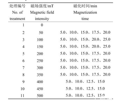 生物磁學(xué)(Biomagnetism)是生物學(xué)和磁學(xué)相互交叉的一門新型學(xué)科,主要探究生物磁效應(yīng)及磁現(xiàn)象、外磁場對生物體的影響。生物磁學(xué)方向的研究已吸引眾多領(lǐng)域相關(guān)專家的高度關(guān)注。生物磁學(xué)目前已經(jīng)普遍應(yīng)用于環(huán)境保護(hù)工程、農(nóng)業(yè)、林業(yè)等許多領(lǐng)域,且已取得巨大的收益,其中,在農(nóng)、林業(yè)領(lǐng)域采用最多的為磁化水。磁化水是指以一定的流速通過磁場,受磁力線切割使自身的理化性質(zhì)發(fā)生變化的水或水溶液。