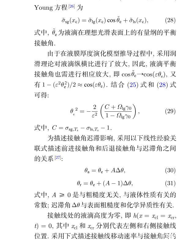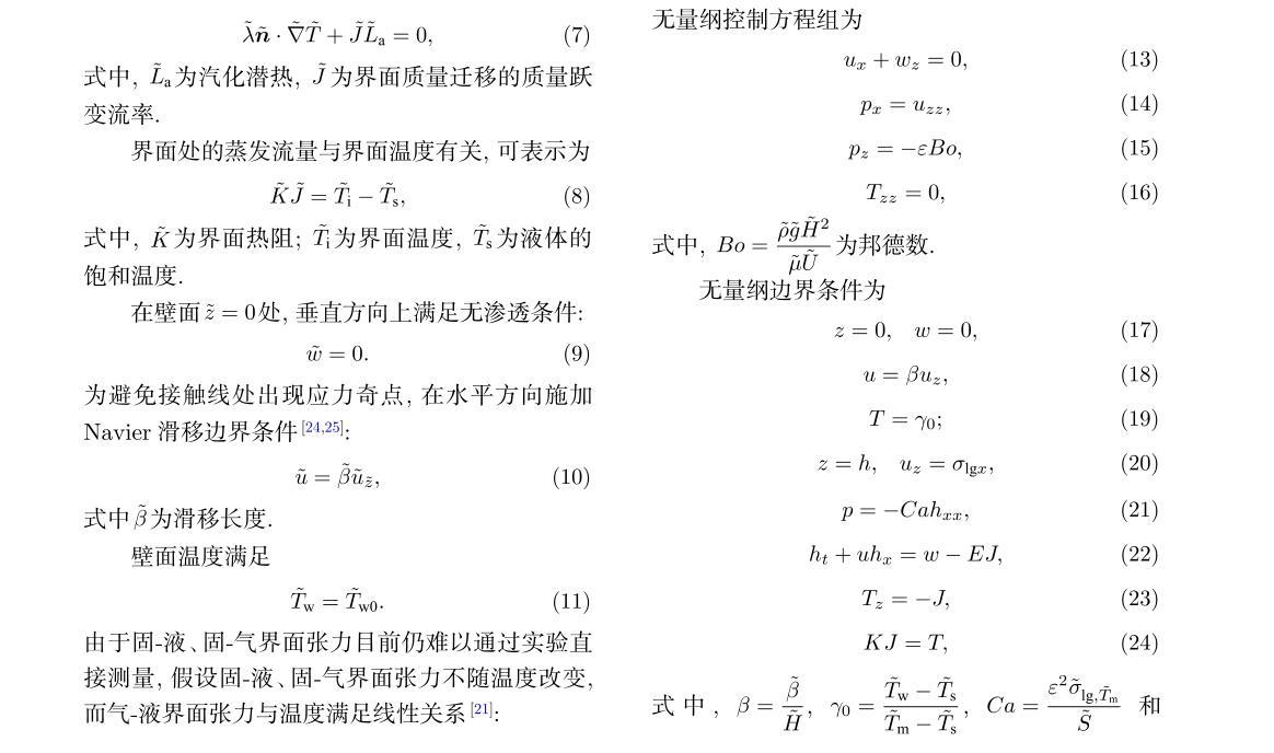 接觸角遲滯時(shí)氣~液界面張力的溫度敏感性對液滴蒸發(fā)過程的影響——理論模型及計(jì)算方法