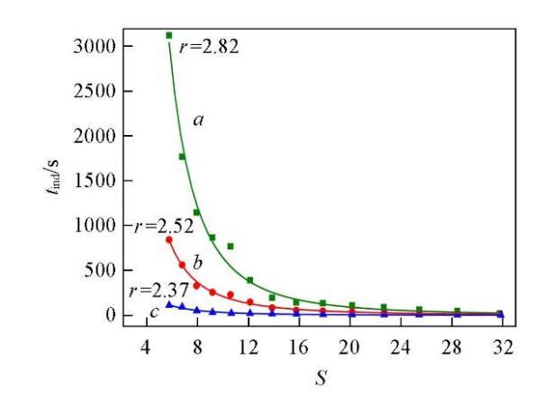 圖2顯示了3個不同的過飽和度下lntind與1/T的關系.可見,lntind與1/T之間呈線性關系,由直線的斜率可以計算得到Li2CO3的成核活化能Eact為63.69 kJ/mol.
