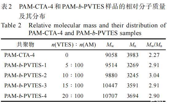 表2 PAM-CTA-4和PAM-b-PVTES樣品的相對分子質量及其分布