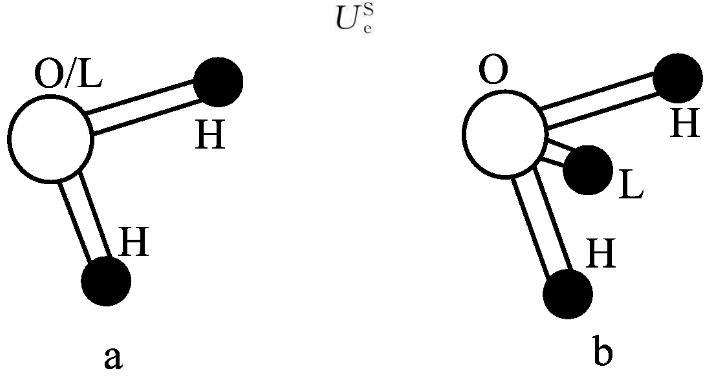 圖3a中為SPC、SPCE和TIP3P模型,b為TIP4P模型(L:負電荷作用點;H:正電荷作用點)