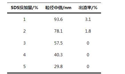 表1 SDS投加量對(duì)產(chǎn)品性能的影響