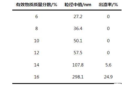 表2有效物質(zhì)質(zhì)量分?jǐn)?shù)對(duì)產(chǎn)品穩(wěn)定性的影響
