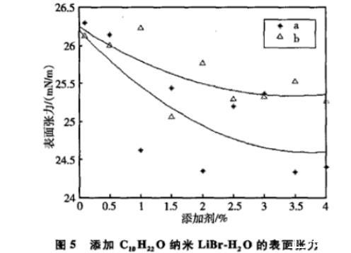 圖5添加C10 H 22 O納米LiBr-H 2 O的表面張力