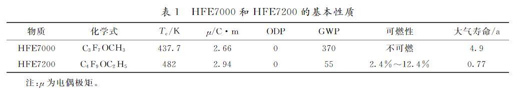 表1 HFE7000和HFE7200的基本性質(zhì)