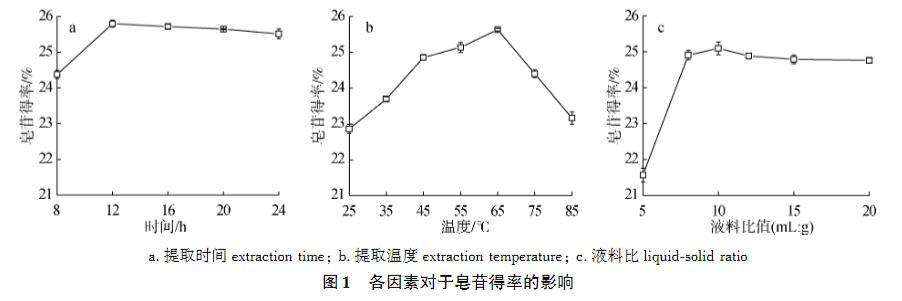 圖1.各因素對于皂苷得率的影響