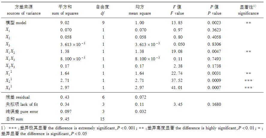 根據(jù)P值大小可分析各因素對肥皂莢皂苷得率的影響程度,因此由P值可知:PX3>PX2>PX1,可以得到各因素對皂苷得率的影響程度為X1(溫度)>X2(時(shí)間)>X3(液料比),即溫度對皂苷得率影響最大,時(shí)間次之,而液料比的影響最小。