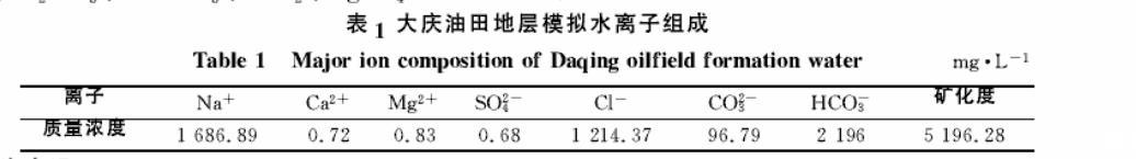 表1大慶油田地層模擬水離子組成
