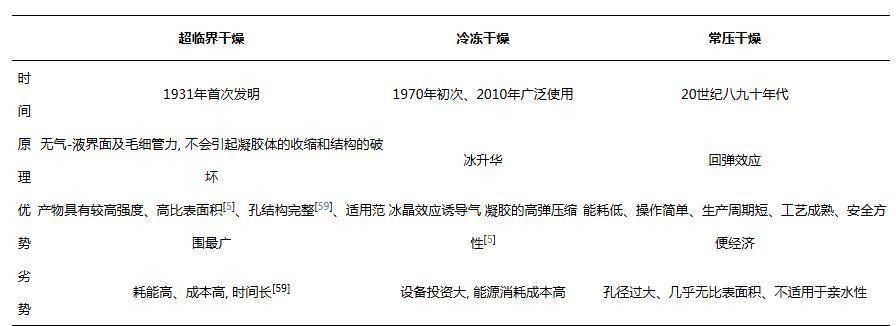 綜上所述,不同的干燥方法側重點不同,各具優缺點。表1概括了三種常用干燥方法的發明時間、原理及優劣勢。