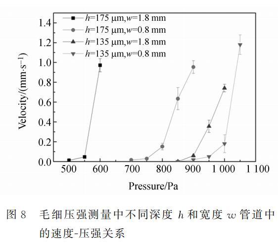毛細壓強是微管道中水由靜止到開始流動時對應的轉(zhuǎn)折壓強。實驗中采用CCD測量微管道中液體前端的前進速度,并記錄相應的水頭高度H。每次測量之前需把管道烘干。