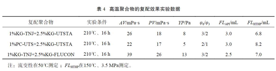 表4高溫聚合物的復(fù)配效果實(shí)驗(yàn)數(shù)據(jù)