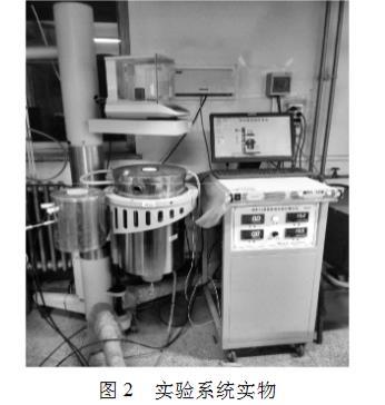 表面張力的測量需在恒溫狀態(tài)下進(jìn)行。初期實驗發(fā)現(xiàn)該儀器的可控硅溫控系統(tǒng)對高溫下實驗測量結(jié)果影響較大,測量數(shù)據(jù)分散性較大,分析認(rèn)為是溫控系統(tǒng)的周期性加熱在熔體內(nèi)產(chǎn)生的不穩(wěn)定對流影響的結(jié)果。為解決這一問題,用可調(diào)壓輸出的直流電源替換了原有的溫控器和可控硅調(diào)壓器,通過手動調(diào)節(jié)并恒定直流電源的輸出電壓控制電加熱爐的加熱功率,使電加熱爐在不同的加熱功率下達(dá)到不同的熱平衡溫度。在每一個熱平衡工況點,電加熱爐輸入直流電壓保持恒定,避免坩堝中熔體內(nèi)部熱對流對實驗測量結(jié)果的較大影響。改進(jìn)后的實驗系統(tǒng)如圖1所示,鉬筒底環(huán)平均半徑0.0065 m;剛玉坩堝高0.1 m,外徑0.05 m;坩堝內(nèi)熔鹽液面高度0.04~0.05 m;直流電源型號為安捷倫N5771A;熱電偶型號為K型;數(shù)據(jù)采集模塊采用研華ADAM4000系列;電子天平型號為JD200-3,精度0.001 g;電加熱爐內(nèi)徑0.06 m,外徑0.2 m,高0.3 m;變頻器型號為三菱D700。實驗系統(tǒng)實物如圖2所示。