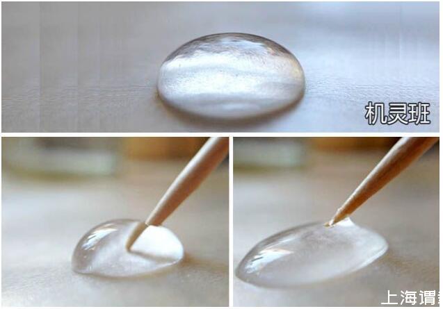 引申實驗,在水滴上放置1滴油,把它們混合在一起后,再用干凈的牙簽戳混合后的液滴,看看此時會發生什么現象。然后用蘸有洗潔精的牙簽戳混合后的液滴,看看又會出現什么現象。