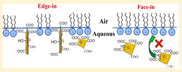 氧化石墨烯 (GO) 已證明 在生物醫學領域的各種有前途的應用。 但 關于 GO 如何與細胞膜相互作用的信息或 模型系統仍然極其有限。 也是未知數 GO 在與脂質相互作用時會自我定向。 在這項研究中, Langmuir 單層技術應用于空氣- 研究水/水界面的性質和方向 GO 和脂質模型之間的相互作用。 五脂 (DODAB、DSEPC、DSPC、DSPA 和 SA)具有相同的 18-碳烷基鏈但不同的電荷頭基被有意選擇以使可能的相互作用合理化。 實驗結果表明,這種相互作用是由極性頭部基團和 GO 之間的靜電相互作用控制的。 GO 可以摻入帶正電荷的脂質 DODAB 和 DSEPC 的單層,但不能摻入中性或負電荷的脂質 帶電脂質(DSPC、DSPA 和 SA)。 當 GO 被注入到帶正電荷的單層下面的亞相中時 脂質 DODAB 和 DSEPC,觀察到不同的表面壓力行為。 “edge-in”而不是“edge-in”的方向模型 提出了“face-in”來解釋GO對DODAB單層的吸附。