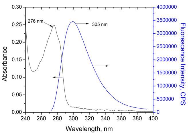 圖4.紫外線 ? vis(5×10 ? 5米)和熒光(5×10 ? 7 M;λ激發=270 nm,激發和發射處的狹縫寬度,分別為5和5 nm)人胰島素水溶液的光譜。