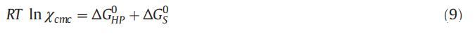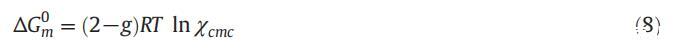 膠束化的標準吉布斯自由能可使用式(8)計算:
