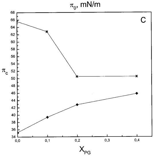 通過測量表面壓力的增量,觀察到抗菌肽在不同初始表面壓力(π0)下嵌入到空氣/水界面上的脂質單層中(?π)將肽添加到亞相后(Brockman,1999;Verger和Pattus,1976)。Magainin 2在π0>12 mN/m時容易插入SOPC單層(圖1A),而在π0以上≈35 mN/m時,其在膜中的滲透被消除,因此該值表示該肽與SOPC膜相互作用的臨界包裝壓力πc。根據其凈正電荷4(Matsuzaki,1998),當膜中酸性磷脂POPG的含量增加時,magainin 2向脂質單層的滲透逐漸增強(圖1 A)。因此,消除magainin 2插入單層的πc值增加至~39(XPG=0.1)、43(XPG=0.2)和46 mN/m(XPG=0.4)(圖1c)。相反,在SOPC膜中加入膽固醇(Xchol=0.1)對magainin 2的滲透沒有顯著影響(圖1A)。