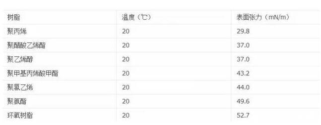 表1一些固體樹脂的表面張力