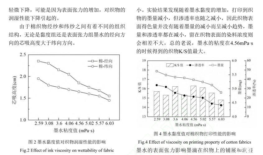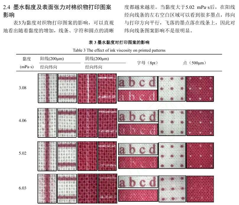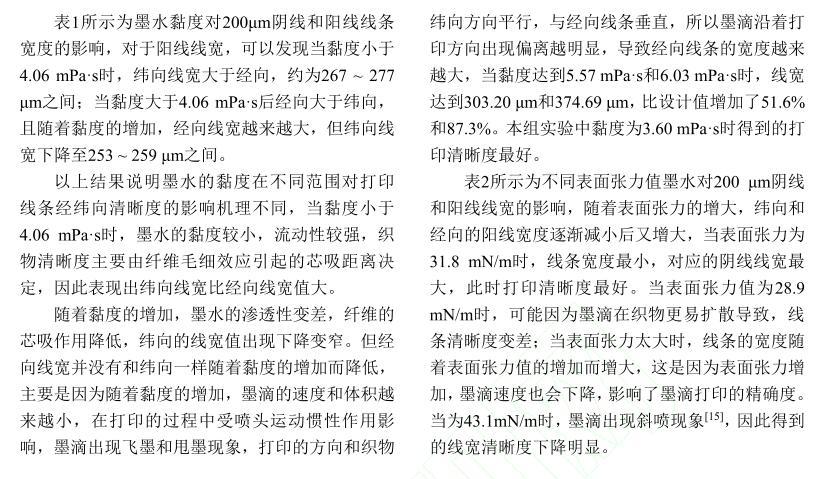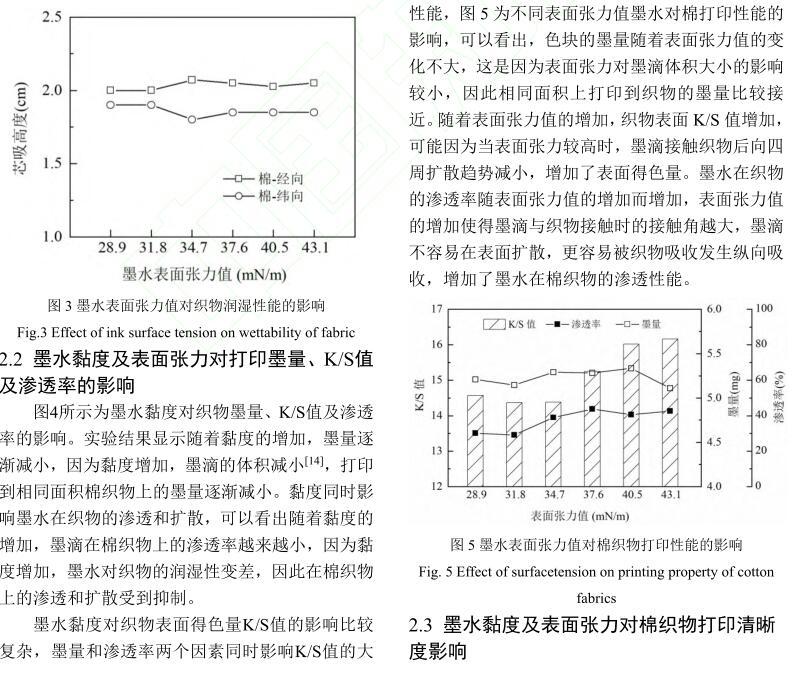 活性染料墨水黏度及表面張力對棉織物印花性能的影響