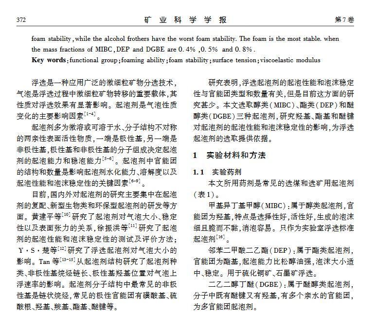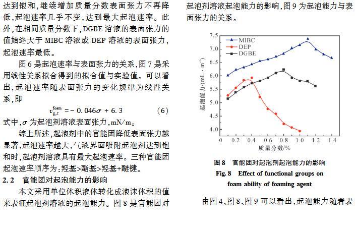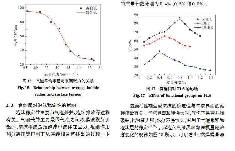 官能團對起泡性能和泡沫穩定性影響的研究