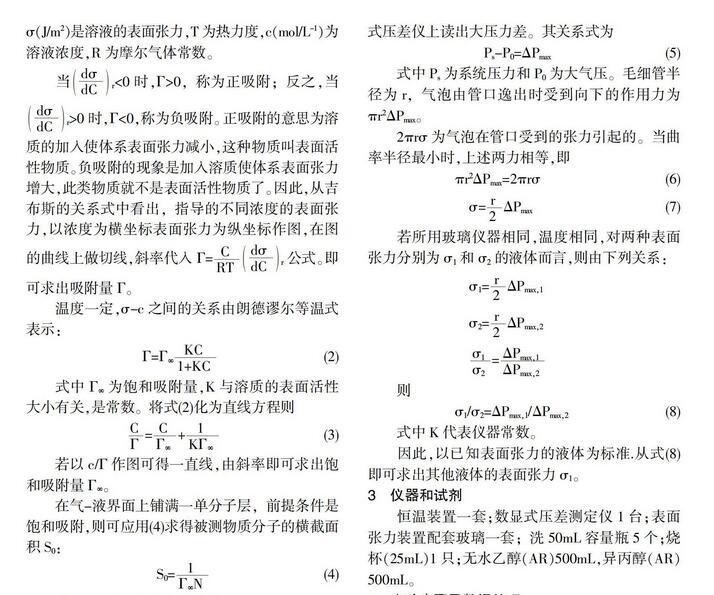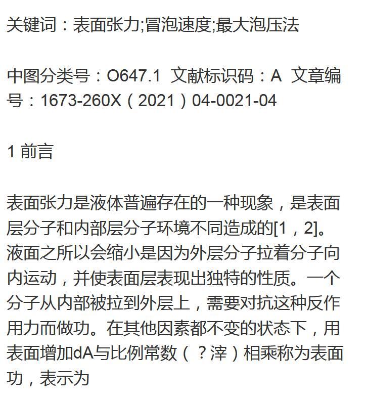 表面張力測定實驗的改進(jìn)——冒泡速度對其影響的初探