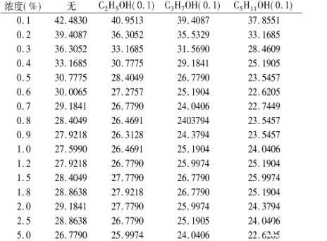 表5不同醇對黃花敗醬皂甙水溶液的表面張力的影響σ×10-3(N·m-1)