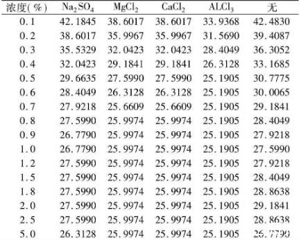 表4不同價態離子添加劑對黃花敗醬皂甙水溶液的表面張力的影響σ×10-3(N·m-1)