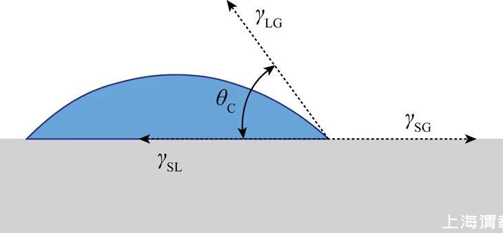式中,γSG、γSL和γLG分別表示固-氣、液-固、液-氣界面張力,θ為接觸角。