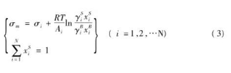 大多數關于液體混合物表面張力的描述都是建立在將液體表面層看作是一個氣液相之間的獨立的體系的假設之上的,基于這一假設,結合經典熱力學理論,可導出關于液體混合物表面張力的計算公式Bulter首先于1932年從熱力學理論出發,導出液體混合物表面張力的理論公式: