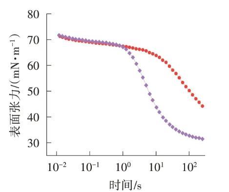 在實際應(yīng)用中,時間快慢起著關(guān)鍵性作用。比如,在泡沫的生成過程中,表面張力的降低會使液膜更容易形成,同時也會使液膜不容易收縮和破壞,得到的泡沫就比較穩(wěn)定。如果溶液的表面張力下降緩慢,相比之下,液膜擴展和破裂的速度快,表面活性劑不能發(fā)揮本身的作用。因此,對于非平衡情況下溶液表面性質(zhì)的研究很有意義。
