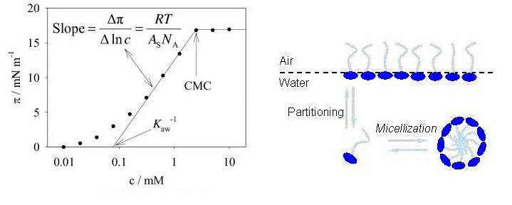 空氣/水分配系數(Kaw)、真正的表面積(As)、臨界膠束濃度(CMC)
